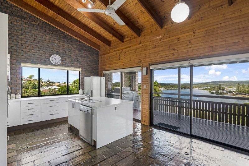 The moment you walk through the entrance of this home you will be impressed with the spacious kitchen, lounge and dining area overlooking the magnificent Evans River.